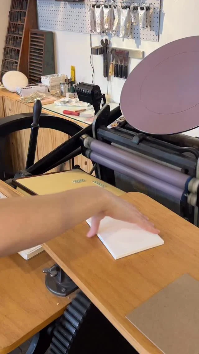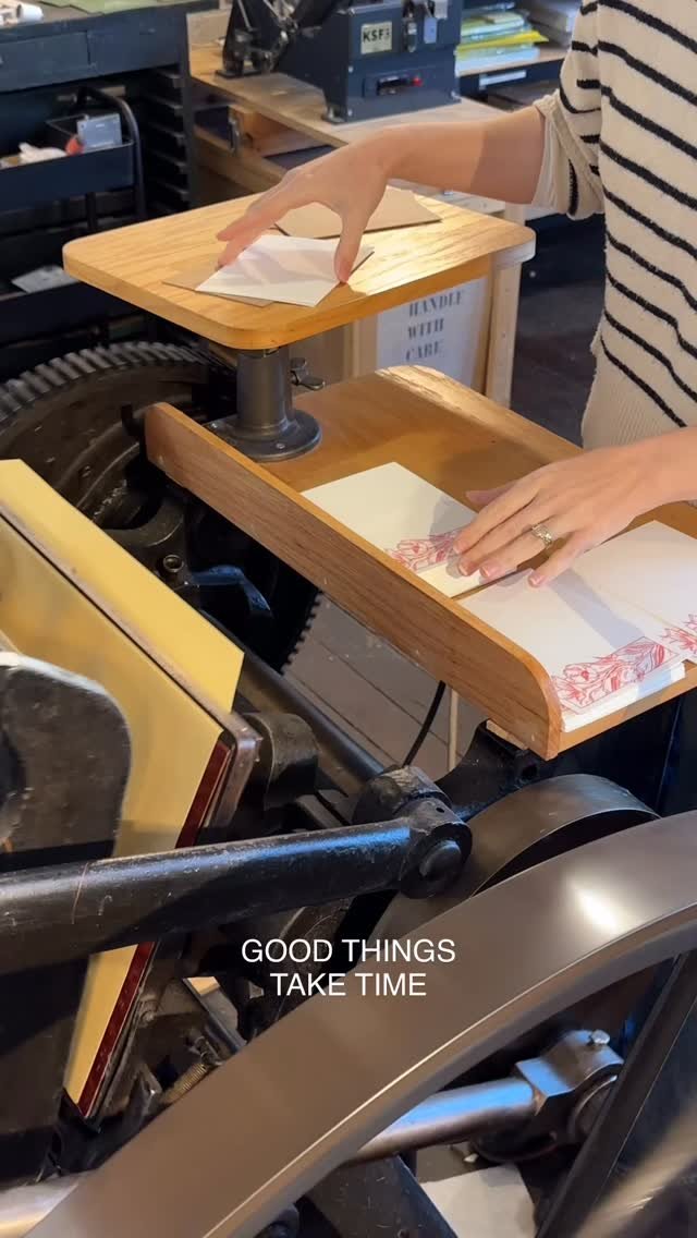 We proudly print everything by hand, primarily on our vintage (c. 1901) platen press, Betty.